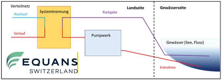 Das dezentrale Seewasser Pumpwerk pumpt pro Stunde bis zu 800m³ Seewasser zum ca. 1km entfernten Hauptgebäude. Dort wird das Wasser in einem niveaugeregelten Verteilbecken zur weiteren Verwendung gesammelt. Die Druckgeregelte Nieder- und Mitteldruckstufe versorgen den Primärkreis der Wärmepumpen sowie die Anlagen mit passiver Kühlung.